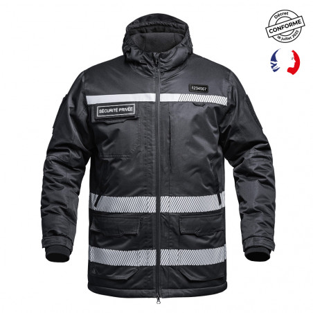TECHNICITÉ : - indice d'isolation thermique HEAT PROTECT Confort -5°C > Extrême -10°C - technologie WF 150 en fibres synthétiques - technologie HARD-SHELL 2 LAYERS (2 couches) - membrane X-PERF 3000/3000 mm imperméable et respirante - traitement déperlant DWR-TECH - coutures étanches - bandes rétro-réfléchissantes HV-TAPE - HIGH VISIBILITY TAPE - normées EN 20471, pour une visibilité optimale ERGONOMIE / DESIGN : - fermeture centrale zippée à double curseur avec patte de sécurité et rabats intérieur et extérieur - capuche élastiquée et doublée polaire - col montant - coudes ajustés - poignets semi-élastiqués, réglables par velcro et avec manchon - taille réglable par élastique FONCTIONNALITÉ : - 1 poche poitrine plaquée zippée - 1 poche poitrine plaquée fermée par velcro - 2 poches repose-mains doublées polaire - 2 grandes poches taille semi-plaquées et fermées par velcro - 1 poche intérieure plaquée zippée - 7 compartiments intérieurs plaqués dont 3 pour emplacement stylos - 4 passants intérieurs élastiqués pour fils écouteurs - 1 accès intérieur zippé pour personnaliser le dos - 1 crochet poitrine - 2 velcros bras + 1 porte-carte velcro SÉCU-ONE pour l'insertion et la visibilité de votre carte professionnelle inclus - 1 velcro poitrine + 1 porte n° d'identification velcro poitrine SÉCU-ONE pour l'insertion des 7 derniers chiffres de votre n° d'identification inclus - 2 patchs amovibles "SÉCURITÉ PRIVÉE" blanc rétro-réfléchissant (dos = L. 30 x H. 9 cm / poitrine = L. 13 x H. 5 cm) inclus Vendus séparément : * porte n° d'identification + logo velcro poitrine SÉCU-ONE (01.203097) pour l'insertion des 7 derniers chiffres de votre n° d'identification et du logo de votre entreprise * lot dossard + bande poitrine "SURETE" (01.202790) * lot dossard + bande poitrine "MAITRE CHIEN" (01.202791) * lot dossard + bande poitrine "VIGILE" (01.202792) * lot dossard + bande poitrine "PROTECTION" (01.202793) * lot dossard + bande poitrine "INTERVENTION" (01.202794) * lot dossard + bande poitrine "SECURITE INCENDIE" (01.202795) * lot dossard + bande poitrine "S.S.I.A.P" (01.202796) * lot dossard + bande poitrine "SECURITY" (01.202798) COMPOSITION : - 65% polyester 35% coton - rembourrage : 100% polyester - tissu certifié Oeko-Tex Standard 100 COLORIS : noir TAILLES : du XS au 4XL CONSEILS D'ENTRETIEN : lavage à 30°
