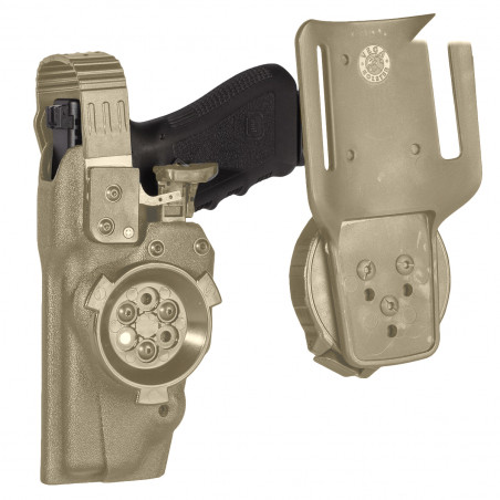 Système de connexion rapide et rotatif à 360° pour holster ou accessoire rigide VEGA HOSTER® (avec fixation 2 ou 3 vis) Partie mâle à visser sur le holster et partie femelle à visser sur le passant pour ceinture/ceinturon, la plaque de cuisse ou la plateforme M.O.L.L.E. (avec fixation 2 ou 3 vis)