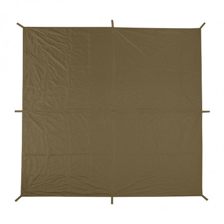 Tissu polyester 210T Ripstop® 2.5 LIGHT-SHELL Enduction imperméable 4000 mm Coutures étanches renforcées Système d'accroche avec 8 oeillets en métal renforcés Répartition des points d'ancrage multi-fonctionnelle Coutures et sangles en nylon Dimensions de la bâche : 2 x 2 m Livrée dans une housse de transport avec fermeture par cordon de serrage Dimensions de la housse : L22 x H25 cm Poids : 480 g Couleur : vert od