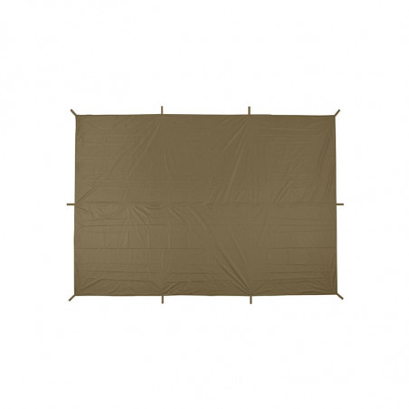 Tissu polyester 210T Ripstop® 2.5 LIGHT-SHELL Enduction imperméable WATER-PROTECT 4000 mm Coutures étanches renforcées Système d'accroche avec 10 œillets en métal renforcés Système d'accroche central multidirectionnel Répartition des points d'ancrage multi-fonctionnelle Coutures et sangles en nylon Dimensions de la bâche à plat: 2 x 3 m Livrée dans une housse de transport avec fermeture par cordon de serrage Dimensions de la housse : L24 x H26 cm Poids : 680 g Couleur : vert od