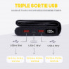 Sortie : 2 x USB-A 18W : 5V/3.1A, 9V/2A, 12V/1.5A - 1 x USB-C 18W: 5V / 3.1A, 9V / 2A, 12V / 1.5A -
