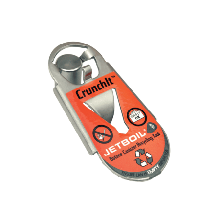 Jetboil a conçu un outil simple, efficace et sûr pour percer facilement les cartouches de gaz vides, permettant ainsi leur recyclage au même titre qu’une boîte de conserve.