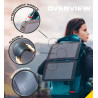 Le Fusion FLEX 12 est un chargeur solaire pliable flexible de 12 Watts, équipé de cellules solaires CIGS entièrement nouvelles, très résistantes et flexible . La technologie solaire CIGS a un rendement de 16,5 % et est protégée par un revêtement ETFE résistant aux rayures et à l'eau. Il peut donc être utilisé dans des situations extérieures difficiles car il est incassable. Le Fusion FLEX 12 intègre une boîte de jonction à double port USB avec indicateur de charge. Son format A4 pliable en fait un chargeur solaire très pratique et compact car il se glisse dans n'importe quel sac à dos et est très puissant, chargeant un téléphone standard en seulement.. Puissance solaire : 12 Watts. Technologie: Cellules solaires CIGS 16.5% Flexible . Sortie: 2 x USB-A 12W : 5V/2,4A. Puissance totale maximale : 12W. État de charge solaire: 1 x indicateur LED. Poids: 240g. Dimensions - Fermé : 288 x 190 x 2 mm. Dimensions - Ouvert: 288 x 385 x 1 mm. Points d'attache: 4