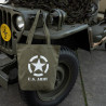 Sur le sac en toile se trouve le logo de l'armée américaine ; c'est l'une des forces armées des États-Unis.