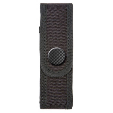 Tissu Cordura® 1000 deniers imperméable Fermeture par bouton-pression deux positions diamètre 20 mm revêtu de gomme antidérapante Fixation par système anti-arrachement pour ceinture/ceinturon (50 mm) et passant M.O.L.L.E. Dimensions : 5 x 3 x 13,5 ou 14,5 cm Livré sans accessoires