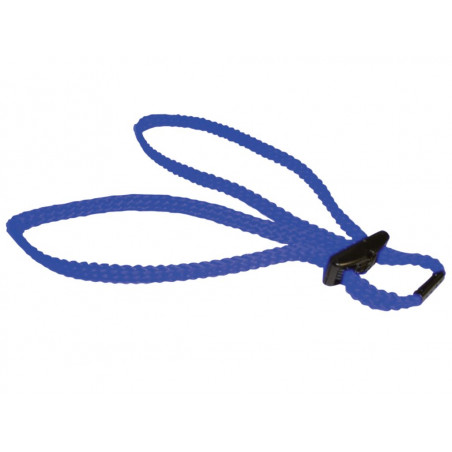 Paire de menottes textiles réutilisable et très légère dont la conception permet une mise en place très rapide et très pratique, la boucle de serrage devenant une poignée de conduite Tresse et curseur étudiés pour résister à une très grande force de traction (jusqu'à 300 kg) Longueur : 90 cm Largeur : 8 mm Poids : 21 g