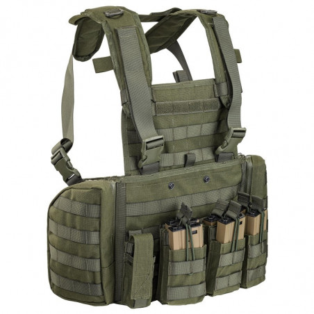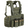 les structures de type Chest Rig sont reconnaissable avec une structure allégé à l'arrière ( possibilité de portage sac a dos) et sa polyvalence d'emport ( porte chargeurs, poche medic, poche fourre tour, poche délestable, etc ...) sur le devant grâce à la présence de passants MOLLE.