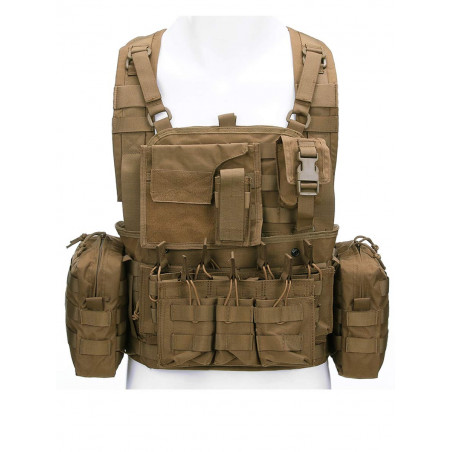 le chest rig est un gilet à fixation M.O.L.L.E ( Modular Lightweight Load-carrying Equipment ) qui permet de fixer les poches compatible avec ce système dans l'ordre que vous souhaitez. Il est similaire au gilet ciras à la différence que le dos est libre et qu'il ne peut pas contenir de plaques balistiques.