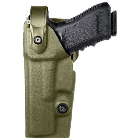 Holster en polymère thermo moulé professionnel qui assure un maintien parfait de l'arme Sécurité anti arrachement par levier sur le haut de l'arme Simple rétention par le système Push & front sur le haut de l'arme