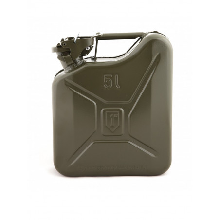 Jerrican homologué en métal couleur vert Otan d'une capacité de 5 litres avec bouchon à bascule pour une fermeture rapide. Ce bouchon est doté d´un joint d´étanchéité et de deux crochets de fermeture qui assurent une parfaite étanchéité. Muni d´une poignée, ce jerrican est idéal pour transporter du carburant.