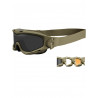Masque de protection balistique livré avec trois écrans interchangeables ( fumé, incolore, orange ) pouvant facilement s'adapter aux différentes conditions d'éclairage