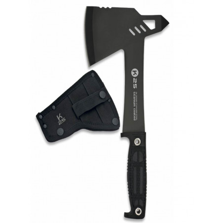 Hache tactique avec revêtement en titane, vendu avec son étui Nylon.
