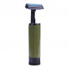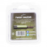 Logé dans une gaine robuste, une simple torsion révèle la lame. Il suffit de tourner la base pour révéler le rasoir.