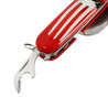 Bel ensemble compact avec couteau, fourchette et cuillière, complet avec ouvre-boîte, ouvre-bouteille et attache cordon.