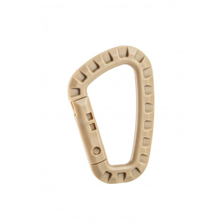 Mousqueton asymétrique en polymère sans système de verrouillage permettant d'accrocher un petit équipement de manière simple et rapide Ouverture d'une seule main même avec des gants Léger et silencieux Structure antidérapante Longueur : 8 cm Largeur : 5,5 cm Couleur : tan