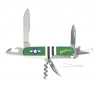 Ce couteau de poche pratique est en acier inoxydable et a douze fonctions.