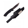 Couteau lame fixe en acier carbone revêtement noir anticorrosion et antireflet ,modèle spécialement conçu pour le bushcraft, étui rigide noir avec aiguiseur diamant et allume-feu tout temps « FIRE STARTER » (à frotter fermement le long du dos de la lame).. Polyvalent et extrêmement robuste.