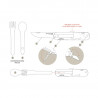 Les couverts se glissent sur chacun des côtés du couteau. L'étui est identique et se porte toujours à la ceinture.