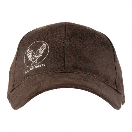Découvrez la casquette de baseball marron U.S. Airforce avec un look cuir élégant. Fabriquée en polyuréthane durable, cette casquette offre à la fois confort et apparence audacieuse. Le logo de l'U.S. Airforce est présent sur le devant de la casquette.