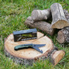 Ce couteau Bushcraft est dotè de deux lames à verrouillage arrière en acier inoxydable avec un revêtement noir. Il a deux lame, une lame de couteau à usage général. La deuxième lame est pour couper le bois ou les branches et a un crochet Gut intégré pour couper les cordes ou les fils éléctriques. Ce couteau Bushcraft est votre compagnon idéal pendant toutes vos aventures en plein air.