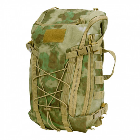 Ce sac à dos est équipé de grands compartiments zippés sur les côtés avec système Molle Compartiment de stockage également sur le dessus du sac. Équipé de lien élastique.