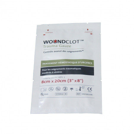 Le WoundClot Trauma Gauze est destiné au contrôle des saignements des plaies traumatiques, y compris des applications de saignements modérées à sévères.