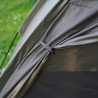 Une autre caractéristique de cette tente sont les volets étendus qui atteignent le niveau du sol afin que vous puissiez stocker derrière vos bagages ou d'autres articles loin du vent et de la pluie.
