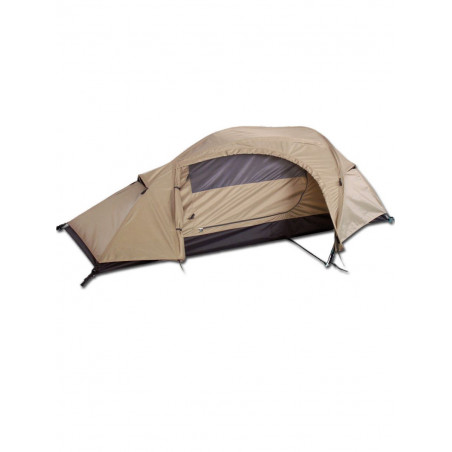 Tente tunnel pour 1 personne à double toit , très compacte, elle a été conçu pour bien protéger l'utilisateur contre le vent. Moustiquaires intégrées, ouverture principale à double fermeture éclaire, petite espace extérieur protégé, permettant à l'utilisateur de stocker du matériel.