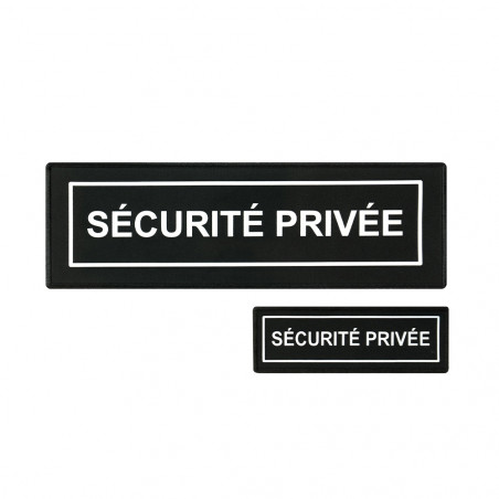 FONCTIONNALITÉ : - un patch bande poitrine et un patch dossard - patchs en tissu - impression "SÉCURITÉ PRIVÉE" blanc rétro-réfléchissant - fixation velcro mâle COLORIS : noir DIMENSIONS : - bande poitrine : L. 13 x H. 5 cm - dossard : L. 30 x H. 9,5 cm